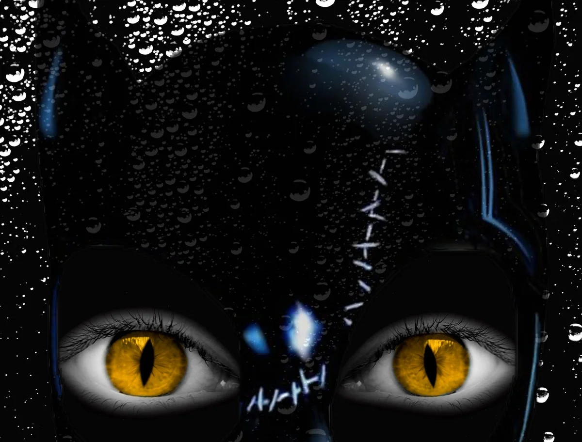 THE DESIGN – My poster consists of a dark raindrop background with Catwoman’s mask and eyes peering out of that darkness. The audience will automatically know who the main character of the movie is with her iconic cat ears and glowing cat eyes. As far as the movie title goes, I decided to go with a bold, legible font and added red claw marks at the end of the title for some aesthetics. The design issue that I had with this particular piece was drawing out the masks and eyes of the main graphic. Using Photoshop, I had to cut around the mask where the eyes are and place a set of cat eyes inside. Then I had to color around the eyes to make it match with the rest of the mask, so that it comes together as one cohesive element on the movie poster. Comparing my creation of the Catwoman movie with existing movie posters, I think that it denotes the same type of mood and resemblance of who Catwoman is as a character.